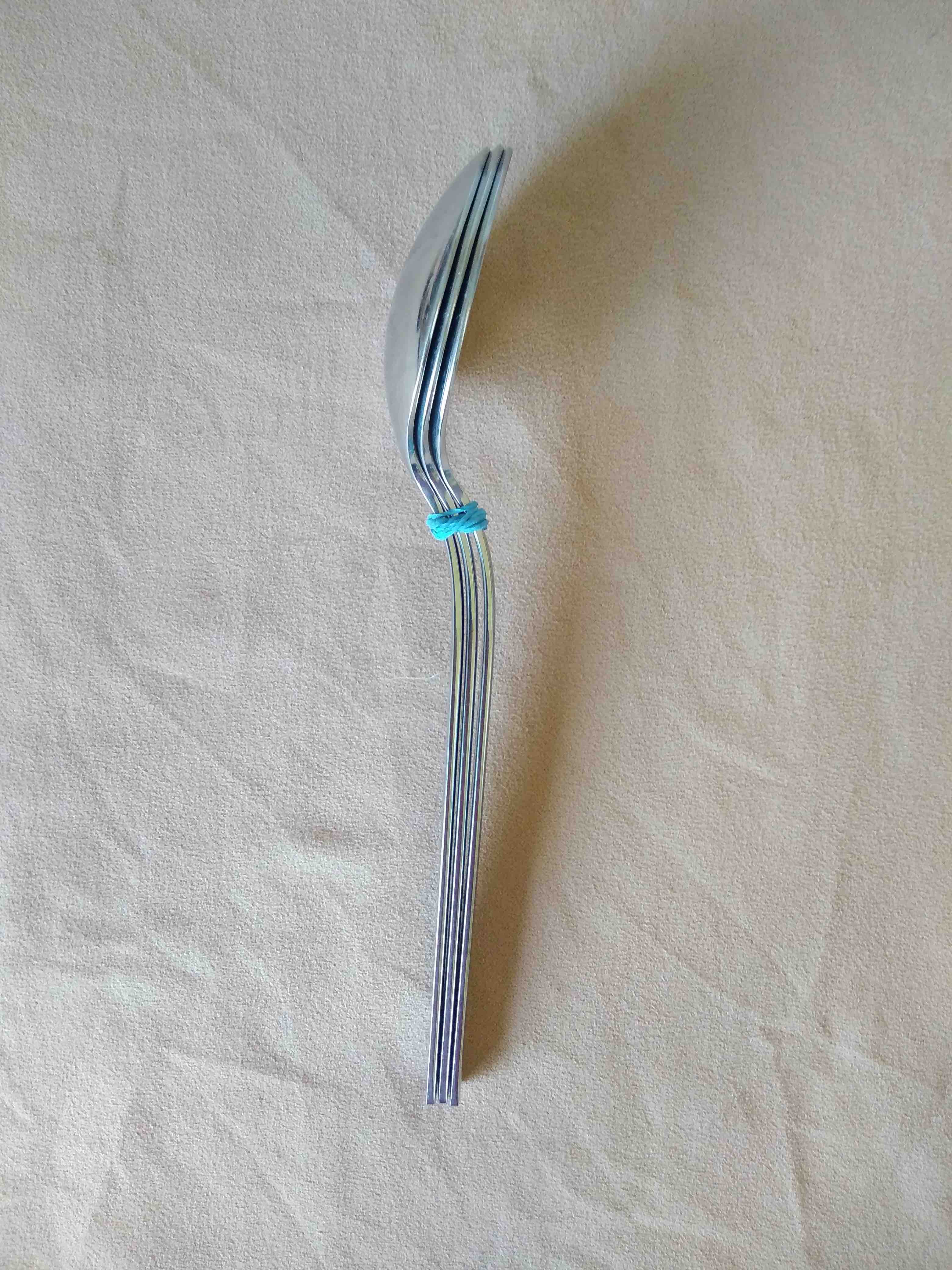 Step 2: Tie the spoons together with the rubber band.